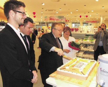 Zur Feier des Eröffnungstags schnitt Bürgermeister Horst Bitsch nicht nur die Begrüßungstorte an. Vielmehr konnte der Verwaltungschef 255 Warnwesten für die Höchster Kindergarten-Kinder als Spende von dm in Empfang nehmen. Darüber hinaus hatte das dm-Team einige Aktionen für die Jüngsten sowie ein Eröffnungsgewinnspiel mit attraktiven Preisen parat.