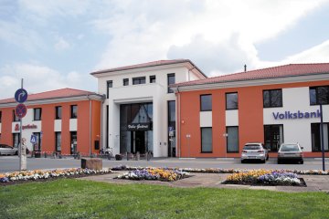 Im Erdgeschoss werden eine ärztliche Gemeinschaftspraxis, eine Apotheke und eine Bäckerei zu finden sein, auch die neue Geschäftsstelle der Bank findet dort ihren Platz. Im zweiten Obergeschoss des Mittelbaus entstehen zudem zwei Wohnungen.