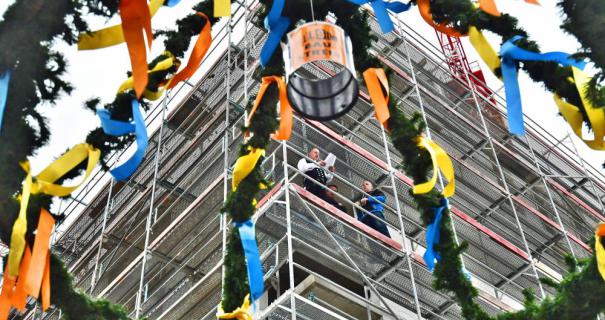 In unmittelbarer Nähe zum Bahnhof in Kelsterbach entstand am neugestalteten Sandhügelplatz in der Mörfelder Straße ein Wohn- und Geschäftshaus mit Supermarkt, Sparkasse, Café und Bäckerei im Erdgeschoss. In den oberen Geschossen sind 78 Eigentumswohnungen zwischen 70 und 125 m² entstanden. In der Tiefgarage gibt es 119 Stellplätze und 54 weitere Stellplätze oberirdisch.